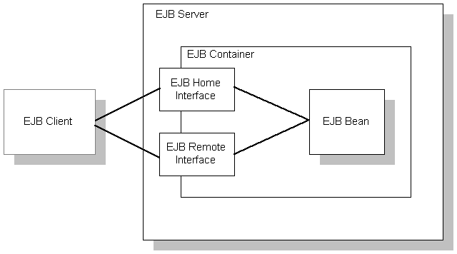 An EJB client does not communicate directly with an EJB component. The container provides proxy objects that implement the components home and remote interfaces. The component's remote interface defines the business methods that can be called by the client. The client calls the home interface methods to create and destroy proxies for the remote interface.